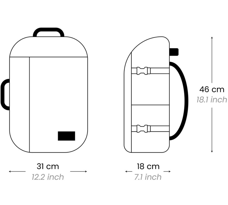 Our ADV Backpack 32L has dimensions 46 x 31 x 18 cm, which can be brought on board for 115 airlines. Check airlines list below