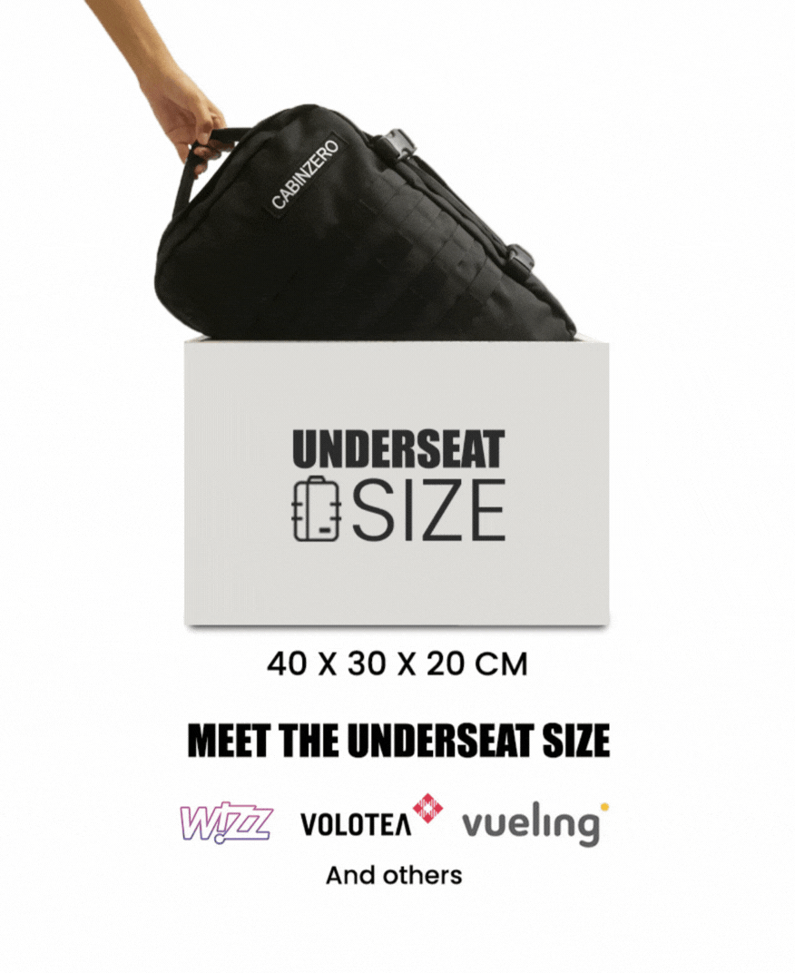 CabinZero Gli zaini sono la borsa perfetta per le franchigie sotto i sedili della maggior parte delle compagnie aeree, anche quelle low-cost. Le CabinZero borse sottosellaCabinZero sono adatte alle descrizioni delle borse per oggetti personali delle principali compagnie aeree, tra cui Ryanair, Delta, Spirit e molte altre.