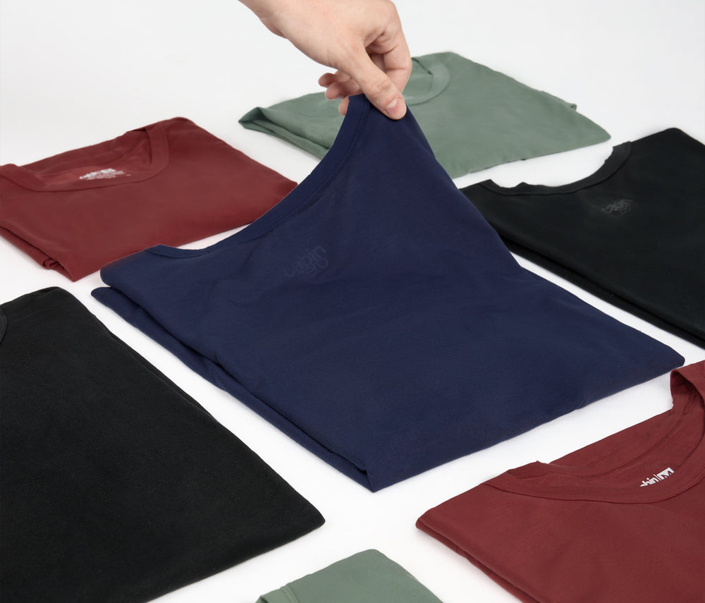 Our ultra-light t-shirts are so thin, you can fit 4+ in a Medium Cube or 6+ in a Large.